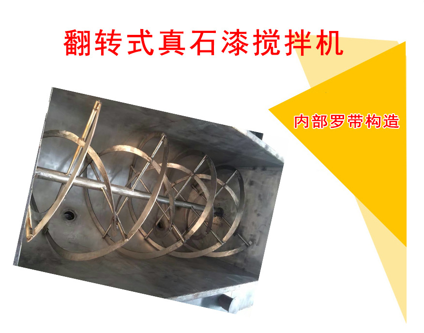 真石漆攪拌機(jī)混合均勻度高,特別是針對粘性物料,螺旋帶上可以安裝刮板,更加適應(yīng)粘稠物料的混合。