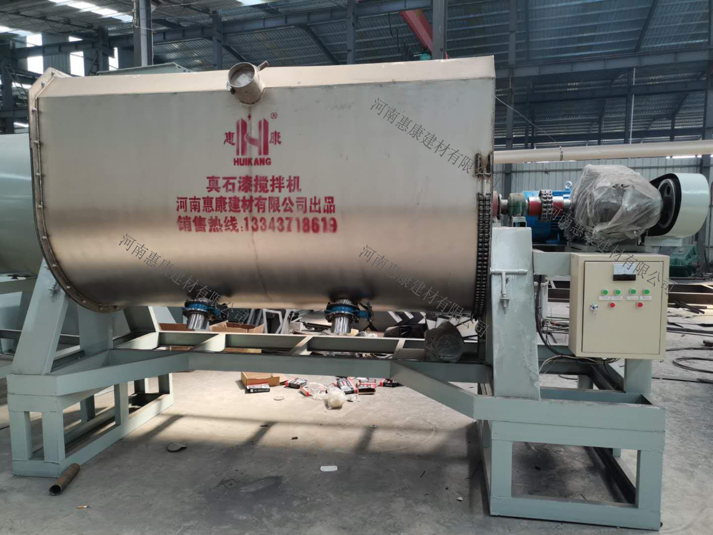 桂林老客戶訂購(gòu)5噸真石漆攪拌機(jī),在常規(guī)機(jī)器的基礎(chǔ)上,客戶要求電機(jī)改為22kw。